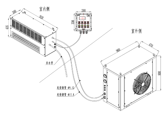 | 室外機外形尺寸 | 長L(mm) | 960 |