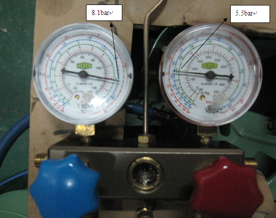 市場個別場地反饋防爆空調壓縮機制冷系統參數不正常,主要表現為低壓壓力偏低,排氣溫度也偏低并有壓縮機凝露現象,通過調整膨脹閥開度或制冷劑充注量都難以調節到合理安全的水平,制冷劑使用了用戶自行購買沒有品牌的制冷劑。現場通過對系統抽空并更換指定品牌的正牌制冷劑,系統參數立即改善達到調測指導要求的合理安全水平。因此市場使用的來路不明的制冷劑可能有很大的隱患,會惡化制冷系統參數并使壓縮機更容易出現故障。在設備開機時對用戶自行提供的制冷劑做基本的檢驗是必要的,下面的指導可以參閱。| 環境溫度(℃) | 飽和壓力(bar) | 環境溫度(℃) | 飽和壓力(bar) |
